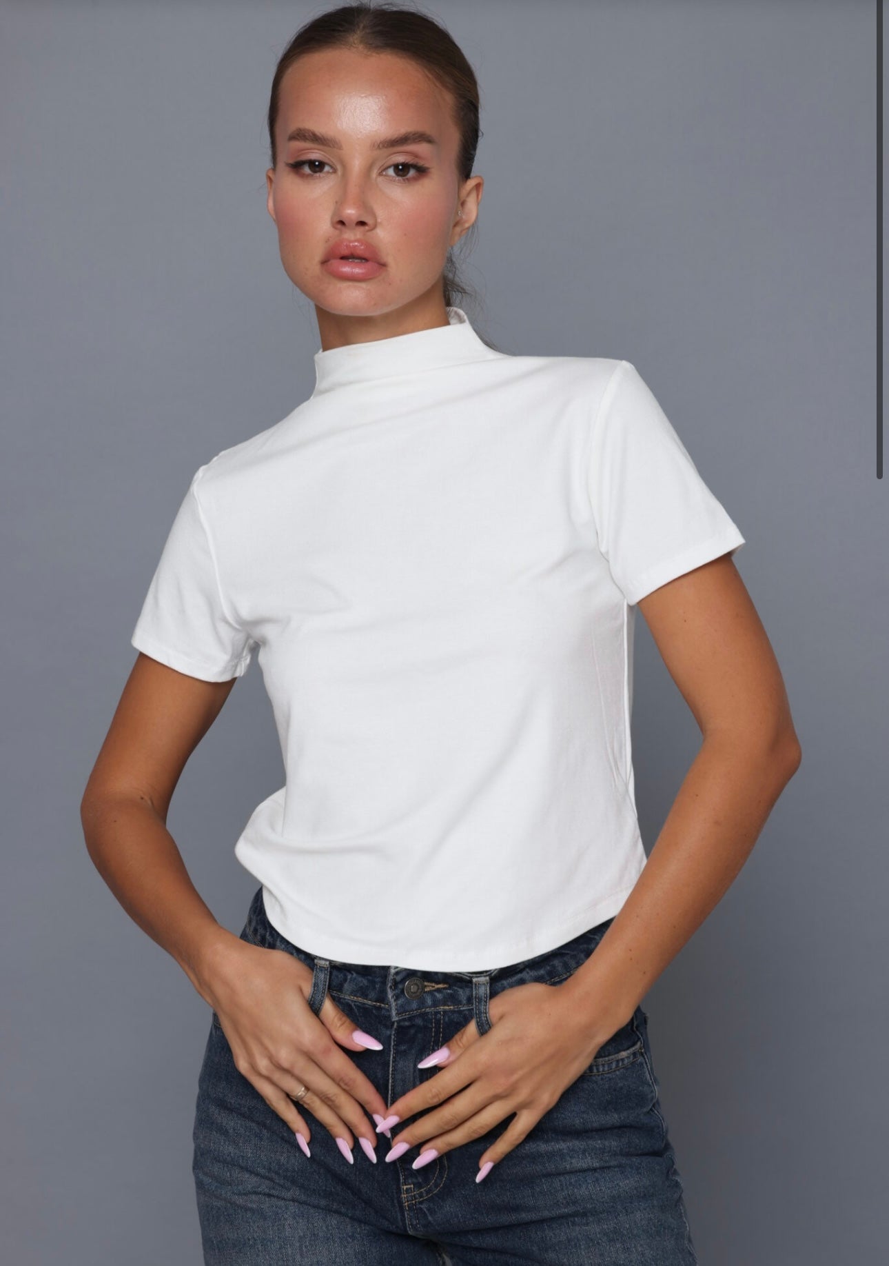 חולצת סריג בעלת שרוולים קצרים וצווארון גולף קצר,