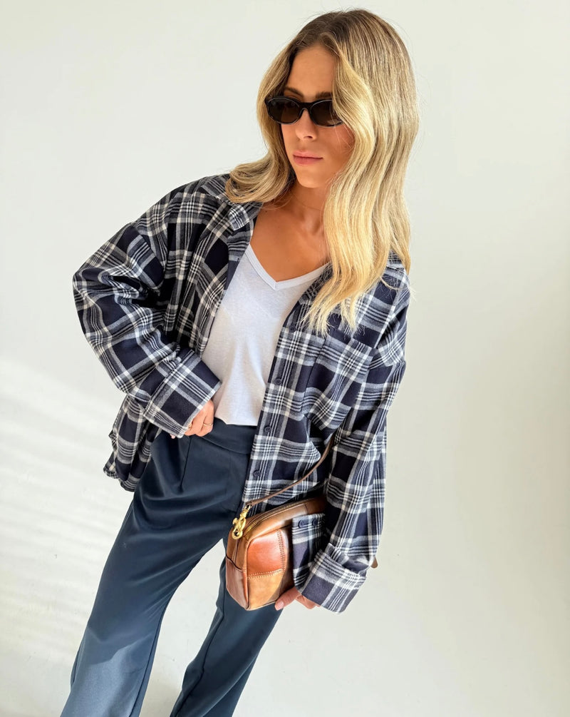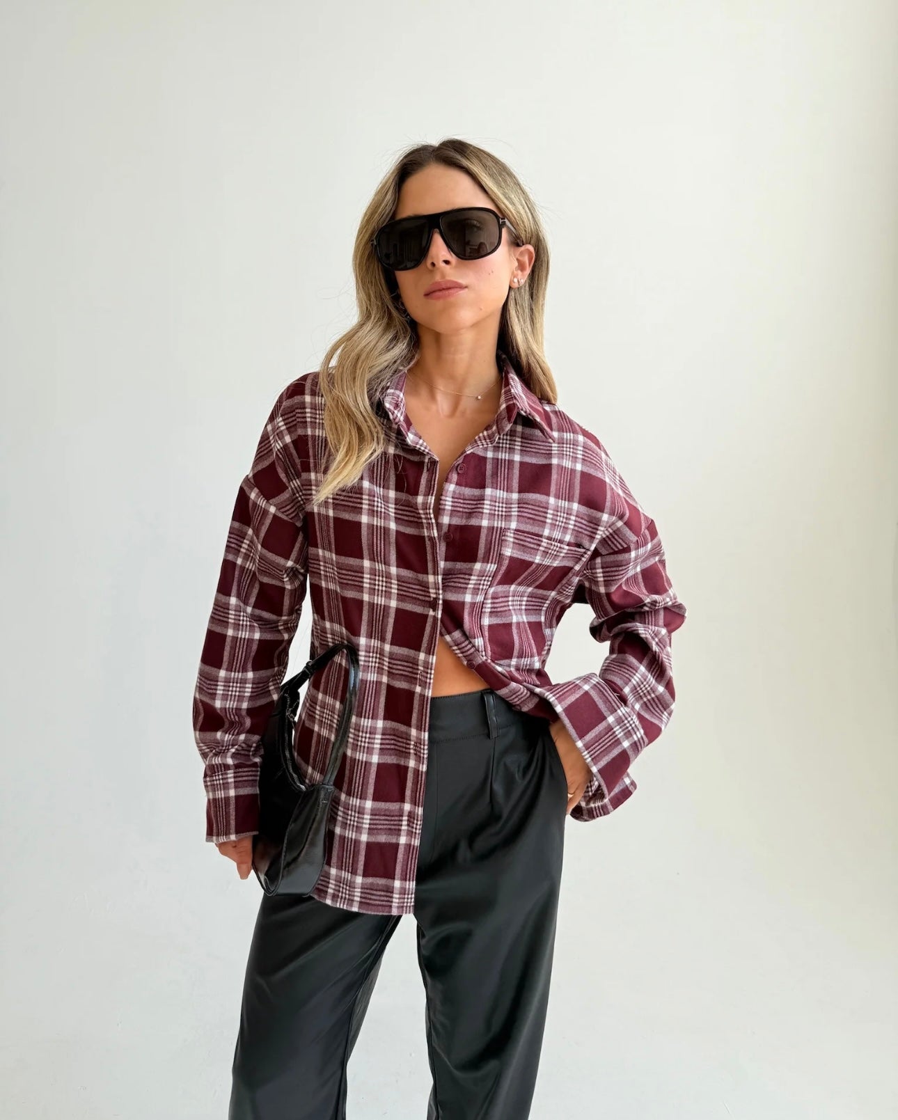 מכופתרת אוברסייז מבד פלנל משובץ וכיס שנשפכת על הגוף בצורה מדויקת, מושלמת ליום יום למי שרוצה לשדרג את הלוק.