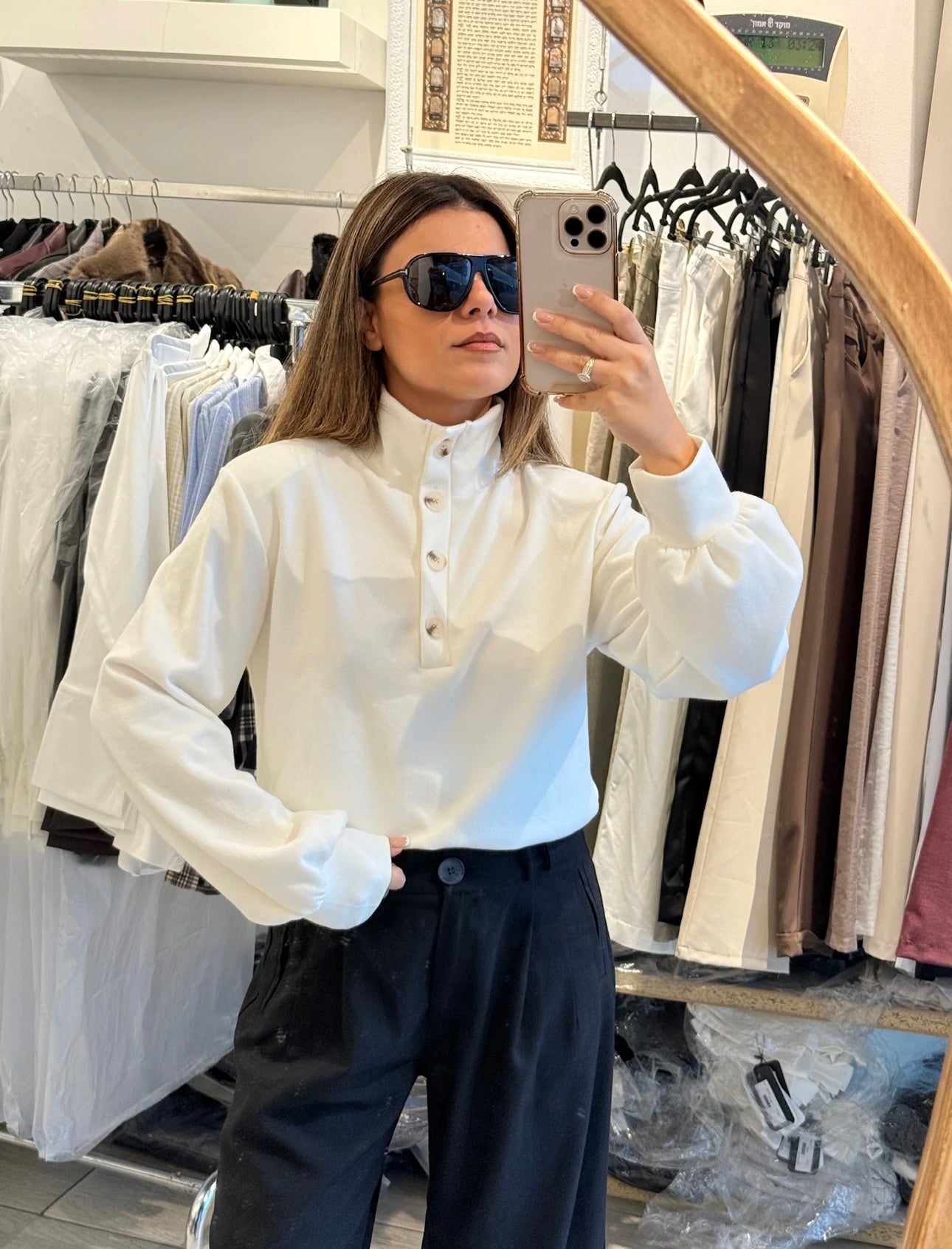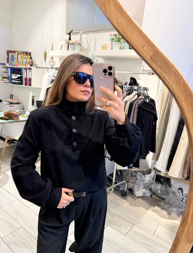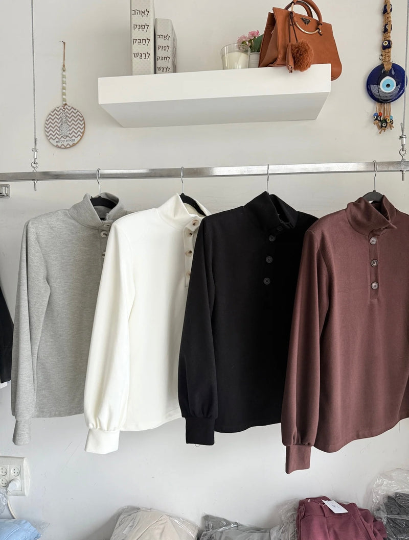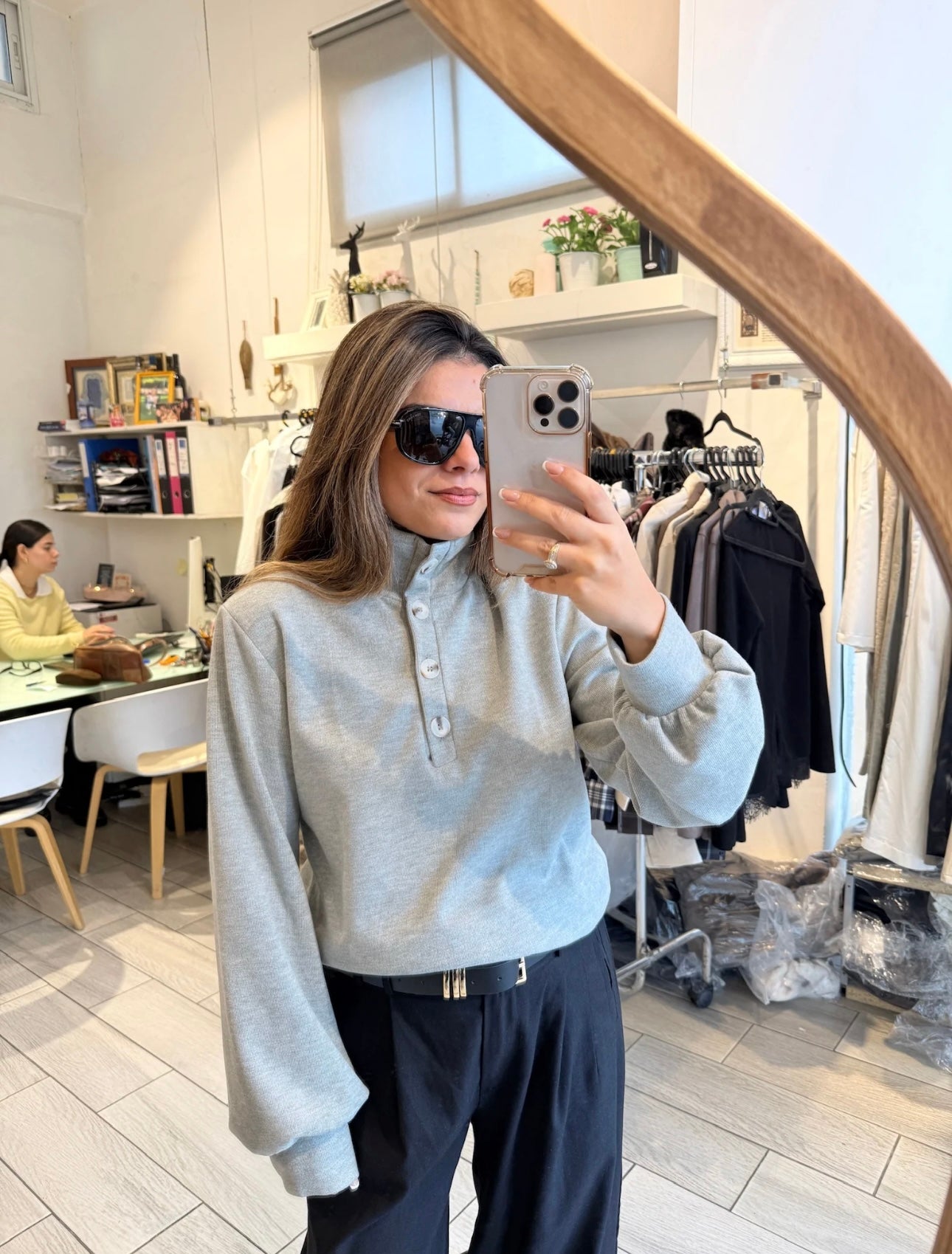 סריג עם צווארון בתוספת כפתורים שמקפיצים את הלוק בכמה רמות